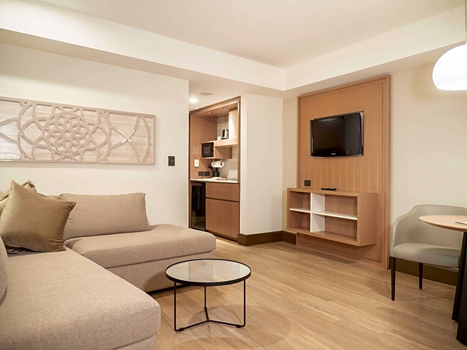 The fully equipped kitchenette has a stovetop, a refrigerator and a microwave. The suite offers air conditioning, a mini-bar, a tea and coffee maker, a seating area, as well as a flat-screen TV with cable channels. The unit has 1 bed.
